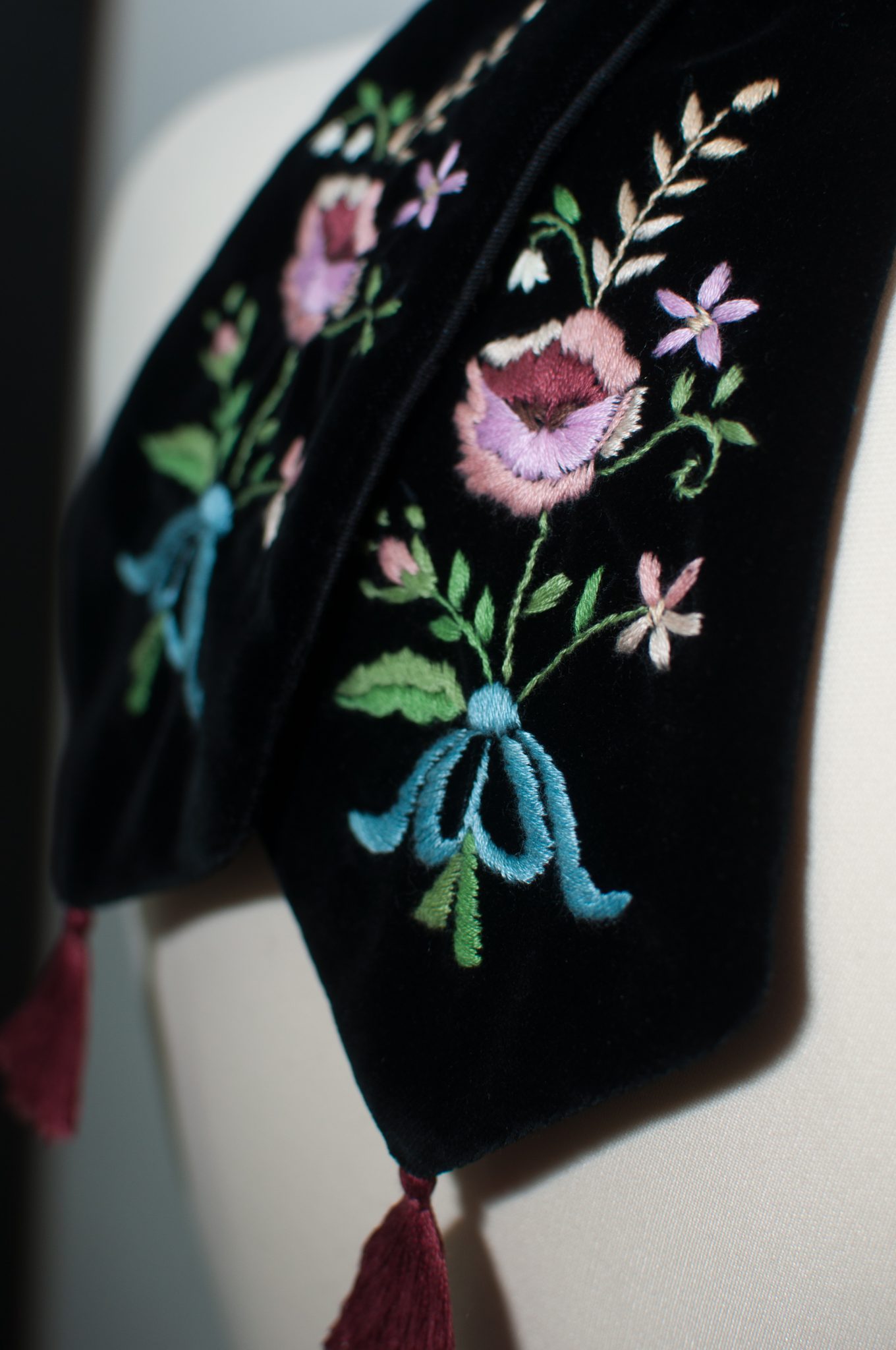 De la desenele florale în peniță, motive de inspirație pentru cravatele masculine și vestele de catifea feminine, pînă la transpunerea lor manuală în broderie, de la stilizarea inteligentă și oarecum contemporană a sursei de inspirație, fără a pierde din vedere punctul de pornire, pînă la propunerea cumva actualizată și posibil de- a fi văzută la nivelul străzii, de ce nu? drumul ei nu a fost unul care se poate rezuma sec sau arid în cîteva cuvințele. Este o muncă în progresie, ca să forțăm traducerea din engleză.