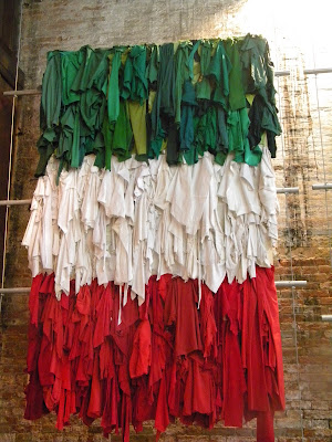 Italienii au avut pavilionul lor special dupa cum este si firesc,mai ales ca sarbatoresc 150 de ani de la unificarea Italiei, cu lucrari grupate sub sloganul L’Arte non e Cosa Nostra iar in Pavilionul Central de la Giardini se gasesc lucrari ale unor artisti prestigiosi invitati ai Bienalei impreuna cu trei mari lucrari ale lui Jacoppo Tintoretto, asociere foarte stranie dupa mine, dar nu lipsita de spectaculozitate.