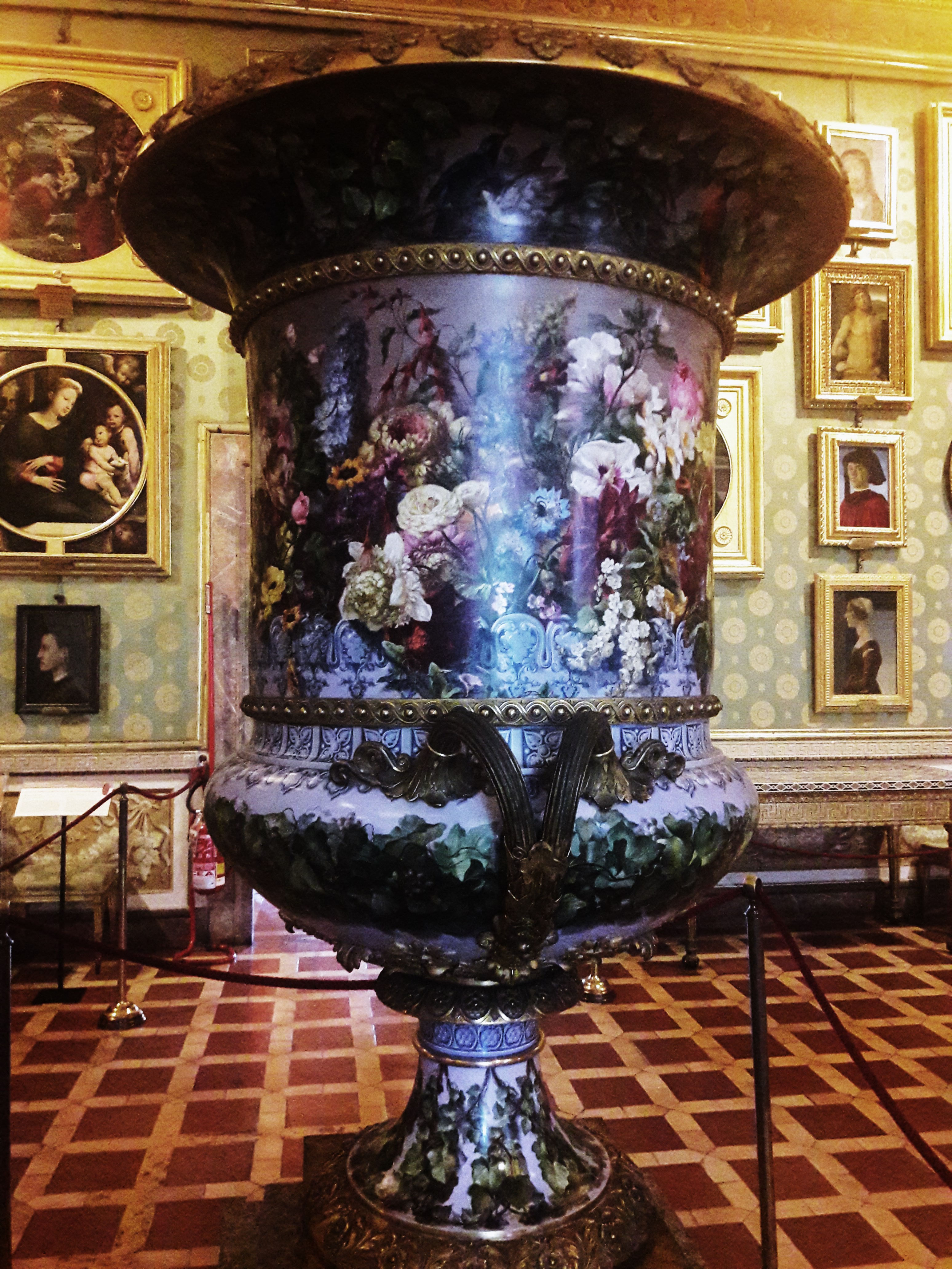 Dacă moda nu mă mai impresionează ca altă dată, vizita în încăperile regale m-a lăsat mută de admirație. Dincolo de toată arhitectura interioară, designul de interior, tavanele cu stucaturile bogate și toate elementele de decor prezente, ceea ce m-a făcut atentă a fost obsesia pentru detalii dusă pînă la granițele imaginației, dacă cumva o fi existînd așa ceva. Nimic nu a fost lăsat la întîmplare sau neterminat, chiar dacă terminatul acelor obiecte nu s-a măsurat doar în viețile unor principii ci a mai multor generații dinastice. Asta mi s-a părut uluitor și măreț, căci cred că acesta este cuvîntul potrivit. Măreția, ca și concept a dispărut complet din vocabularul nostru vizual, iar ceea ce puteți vedea dacă mergeți la Florența și-n muzeele ei, dar și pe străzile sale, este exact traducerea a ceea ce a rămas acolo peste secole și care înseamnă măreție în cel mai pozitiv sens al cuvîntului. Uși, piese de mobilier, perne, candelabre, sfeșnice, mese…toate lucrate cu obsesie artistică care nu ține seama de înregimentarea în cele 8 ore de muncă sau de cele 24 de ore ale unei zile. Conceptul, execuțiile, întreaga realizare dau măsura perfectă a gestului imortalității, ce trece, de bună seamă dincolo de banalele vieți omenești cuprinse harnic în astfel de realizări.