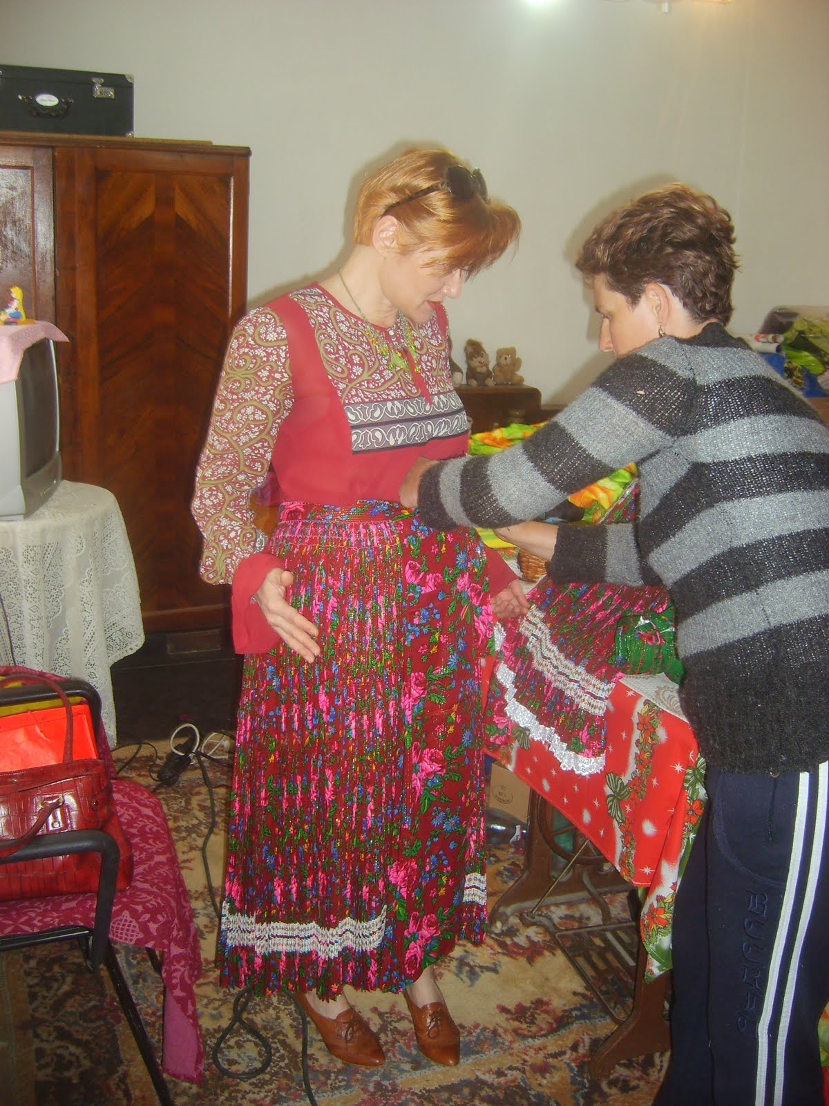 Am aflat astfel, ca fustele se fac fără nici un fel de probe, pentru că țigăncile nu se dezbracă în acest scop, că o importanță deosebită în designul fustei are brîul fustelor ( e primul lucru pe care îl cercetează când se uită la calitatea execuției) și că necesarul de material pentru realizarea unei astfel de piese e în jur la 16-18 metri de material plisat.