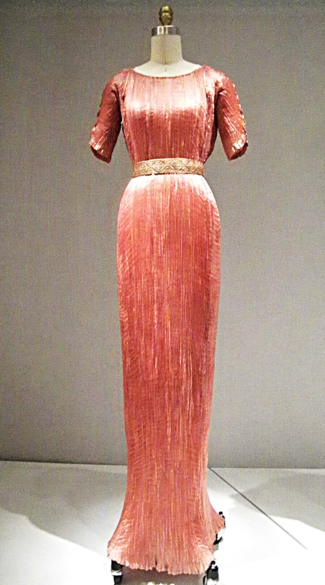 Secțiunea cu pleating se deschidea cu Madame Gres, să nu uităm de ea. Și maniera ei de drapaj, un mix între drapaj și plisare, oarecum, este prea puțin cunoscută. În multe dintre piesele realizate de ea intrau de la 13 pînă la 21 de metri de țesătură, așa numitul jerse de mătase, materialul preferat al creatoarei.