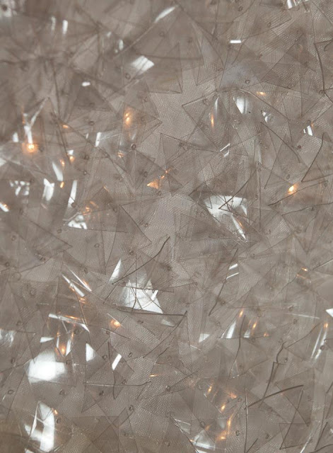Cristina este o ființă aparte, mai interiorizată dar extrem de determinată când își pune ceva în minte. Piesele pe care le voi posta sunt detalii spectaculare ale unei munci migăloase și extrem de asumate. Există aici o piesă executată din mii de tuburi segmentate de perfuzie cusute sisific cu mânuța ei cea dreaptă.