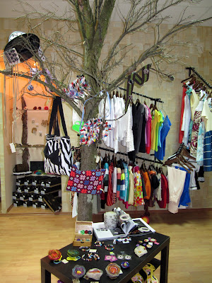Aflat in centrul magazinului, copacul ( care nu stiu cat de mult este cel al taclalelor, dar presupun ca este :D) functioneaza ca un fel de axis mundi fashionist pe care stau agatate tot felul de lucrusoare colorate si ingenioase care invita la cercetare si atingere.
