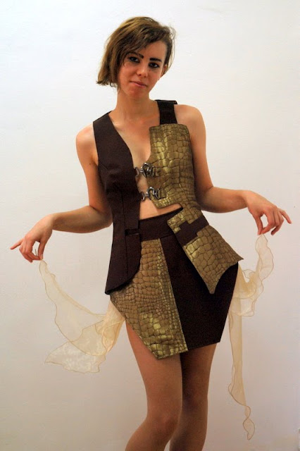 Prezentarea a inceput fara nici o logica organizatorica cu o studenta al carei nume incepea cu M, nici macar logica de bun simt a iesirii in ordine alfabetica, poate doar in logica stupida a coordonatoarei celorlalte colectii ce dorea sa le dea intaietate studentilor sai. De aici a inceput haosul; studentii trebuiau sa mai imprumute cate un manechin de la unul la celalalt si in haosul creat panica si lacrimile au fost inevitabile. Momente penibile de pauza in care, desi anuntate de d-na coordonatoare colectiile intarziau sa apara. La mine s-a prezentat d-na sefa de catedra sa ma atentioneze sa nu intru cu comentarii “subversive” despre colectii; vazand ca onorata mea colega spune doar titlul si absolventul m-am simtit datoare sa explic, in cazul copiilor coordonati de mine, sursa de inspiratie pentru ca cei din public sa priceapa cat de cat demersul. M-am uitat la ea si am spus franc ca nu voi face asta pentru ca nu fac aprecieri asupra colectiilor ca sa influentez comisia, ci, doar vreau ca publicul sa priceapa ceea ce vede. Va invit sa cititi pe wallul lui Alin Galatescu de pe Facebook impresia despre “showul” de moda de la Sibiu. Chiar a fost traumatizant. Mai mult decat atat, pun pariu ca the blame it will be entirely mine…”c-asa-i in tenis!” Bine ca au scapat de o pseudo scoala in care impostura si non valoarea isi dau mana si se imbratiseaza cu veleitarismul, promiscuitatea si dezinteresul real pentru a face invatamant de calitate .