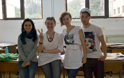 Se rezolva problema, studentii intra si sustin teoretic lucrarea cu micile frecusuri previzibile. Pe la ora 12 se termina totul, comisia obosita se retrage , noi ne retragem in atelierele Fac. de Inginerie Textila, (care ne-a pus mereu spatiul sau la dispozitie) pentru ultimele retusuri si calcarea tinutelor.