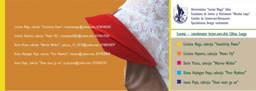 Maine la ora 16.00, in holul Universitatii “Lucian Blaga” din Sibiu va avea loc sustinerea lucrarilor de licenta ale studentilor anului III spec. design vestimentar care se va concretiza prntr-o prezentare de moda. Imaginile de mai sus fac parte din colectiile celor pe care i-am coordonat eu…ilegal!