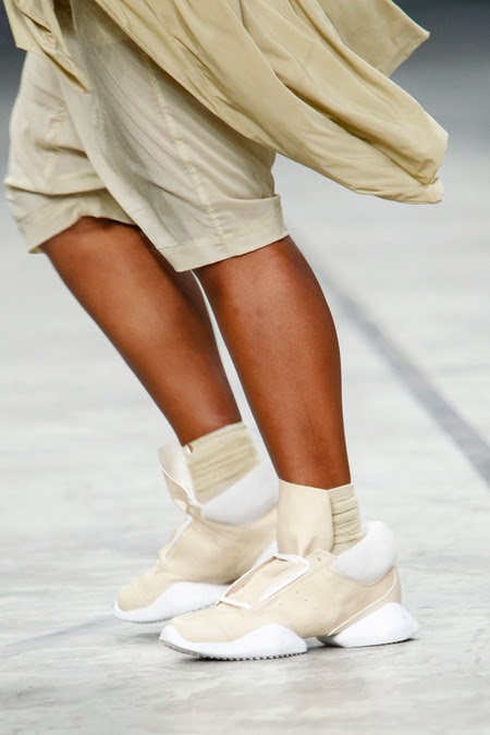 În antiteză perfectă cu imaginile strălucitoare promovate pe podiumurile de fashion, pe care calcă modelele măsura 0, Rick a ales ca protagonistele prezentării să fie membrele unor trupe de step- dance, cu proporții și înălțimi deloc grațioase. Războinicele sale apar în cadru pe ritmuri deloc dulci, cu mimica supărată înspre scârbită, iar tot ceea ce poți verbaliza din străfundurile educației tale perfect estetizante este că sunt urâte ca naiba. Dincolo de întreaga punere în scenă a show-ului, care scoate prezentarea, firesc, din anonimatul înșiruirilor pe catwalk, partea pozitivă este dată, indiscutabil de transgresarea dusă până la extrem, a categoriilor estetice cu care suntem alimentați cotidian de lumea obișnuită a modei. Rick Owens este liber și foarte altfel în acest sistem construit al modei deopotrivă cu Chalayan, Viktor&Rolf și alții asemenea. Dacă i s-ar putea imputa ceva, legat de demersul său de design, sigur aceasta nu ar face referire la veșminte. Pentru că după ce trecem de prima impresie dată de mișcările și muzica repetitiv ritualică și privim veșmintele cu atenție, nu putem spune că a mizat pe efectul de scenă pentru a ascunde lipsa creativității.