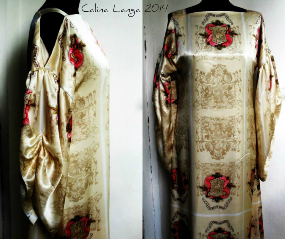 - Rochie din mătase naturală imprimată, I line, cu mîneci oversized, Calina Langa, piesă custom made