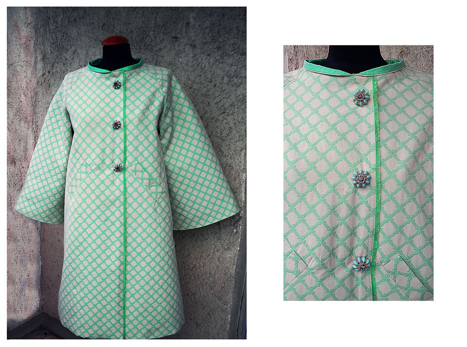 - Mantou A line cu mînecă evazată raglan, detalii de margini nefinisate și nasturi bijuterie, Calina Langa ,piesă custom-made