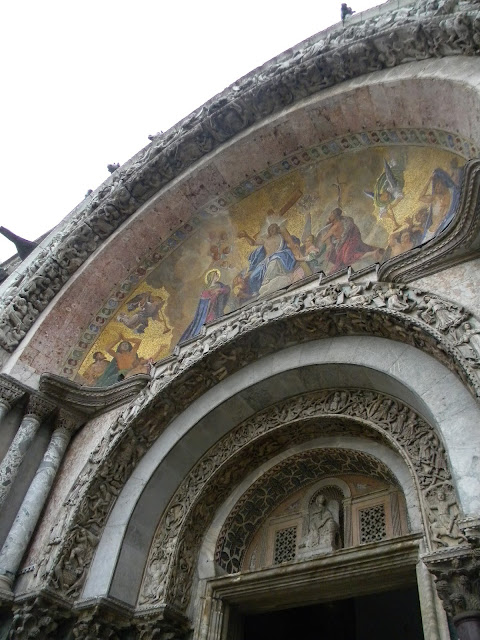 Îmi pare rău pentru perspectiva celor care văd Veneția ca pe o ruină mizerabilă și nu mă străduiesc să-i mai conving să citească frumusețe în trecut, vechi și demult apus. Prefer să aleg cuferele așa zis sărăcăcioase din poveste, care se vor deschide discret doar pentru unii. Vă las cu o imagine grăitoare de la intrarea din San Marco.
